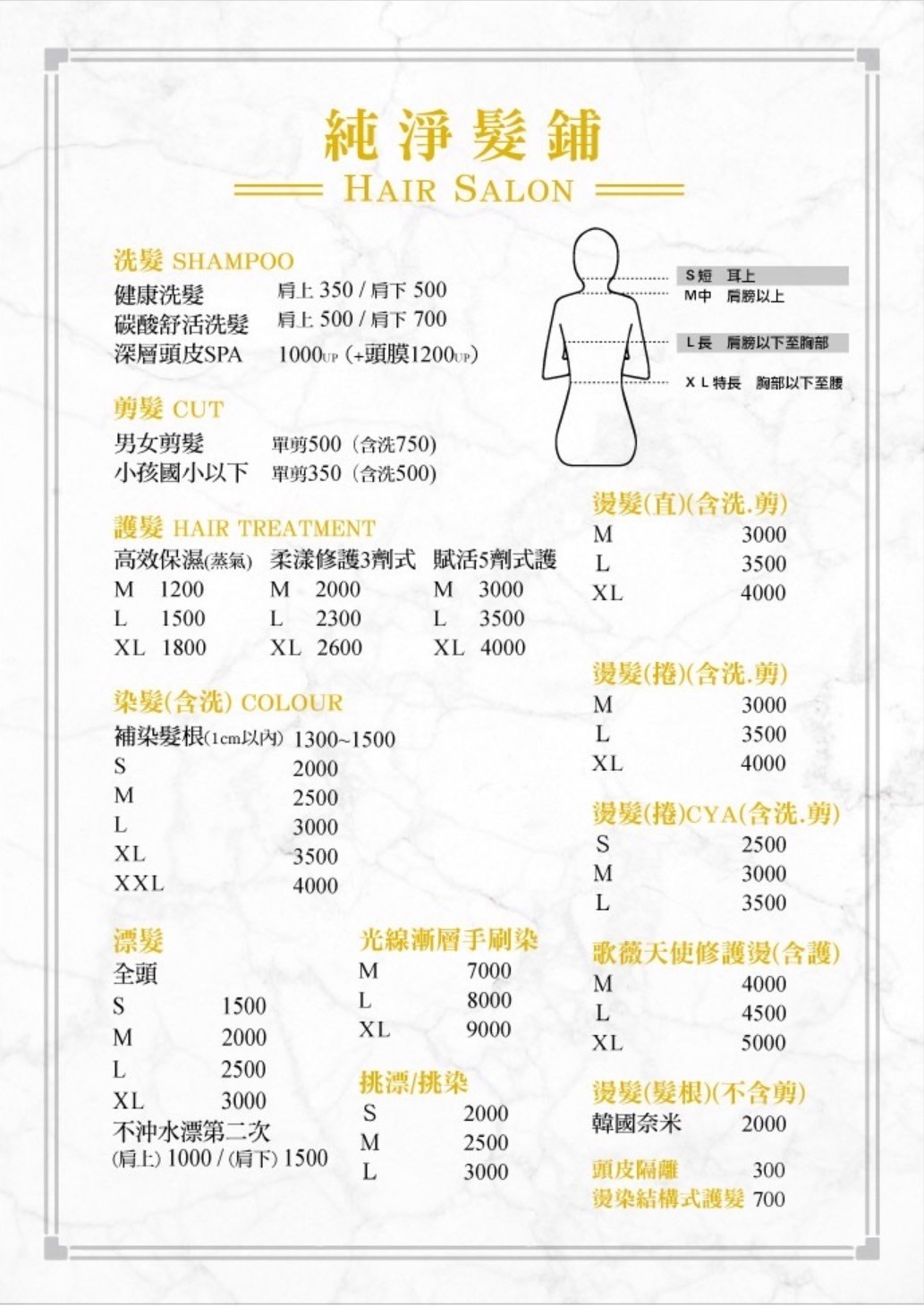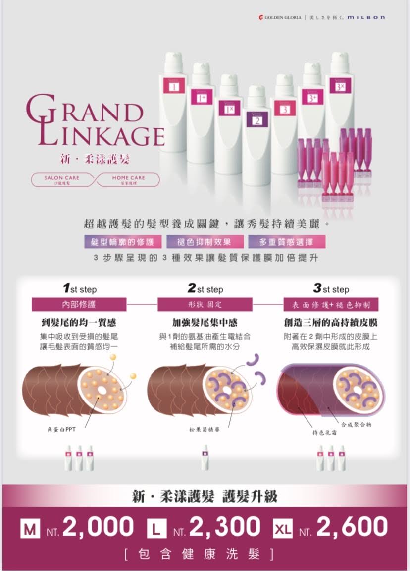 包括造型剪髮、精緻染髮、Spa養護、頂級護髮