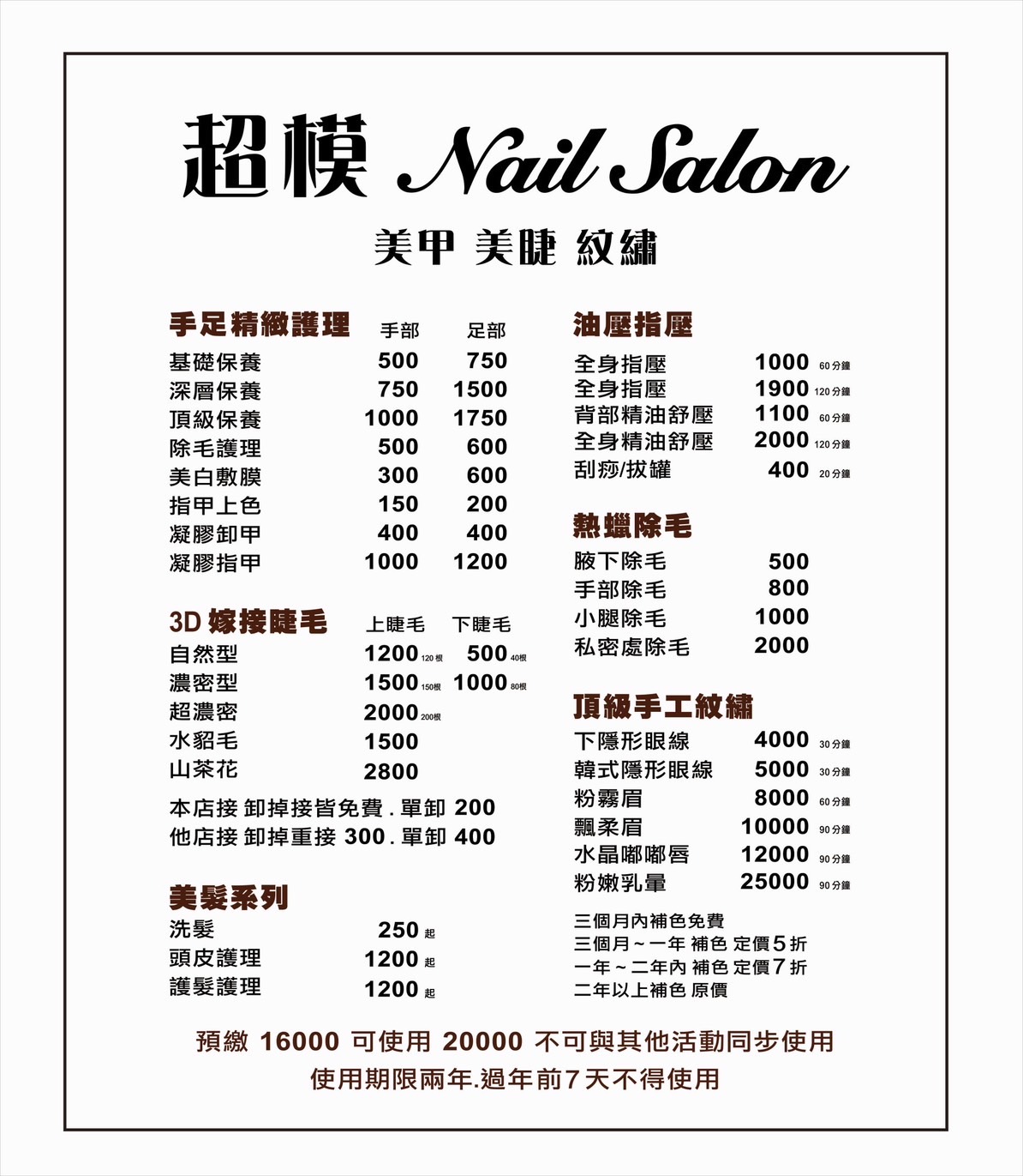 120分鐘3500體驗價2500