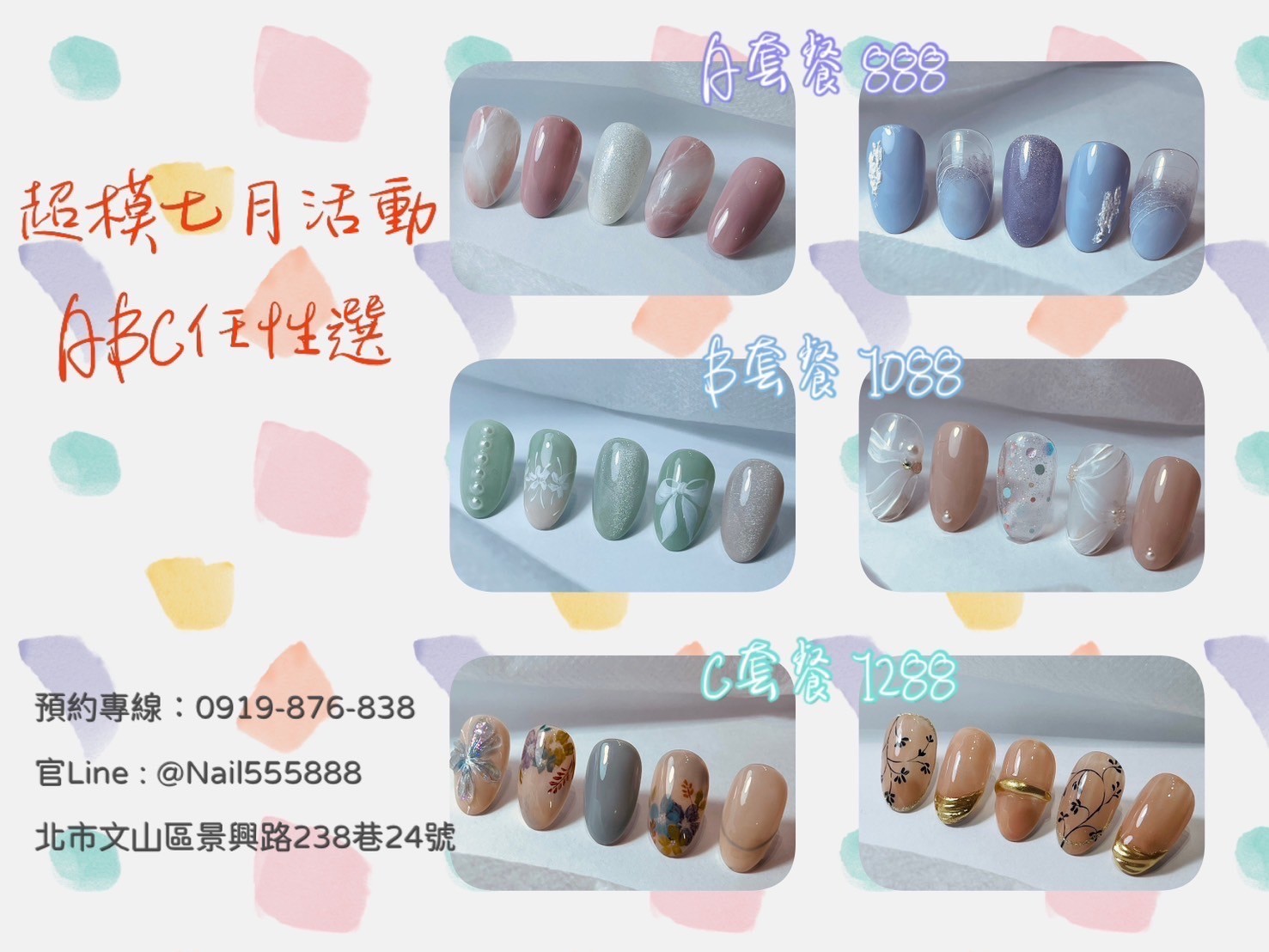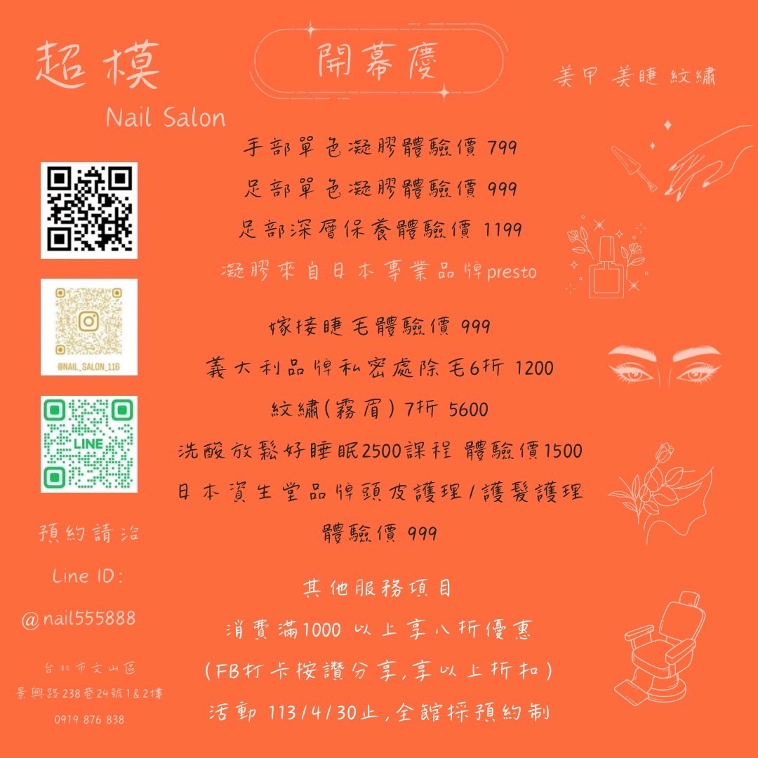 位於景美,鄰近捷運站&夜市,在新店有著十多年的經驗,景美全新分店,主要有美甲、美睫、頭皮護理、紋繡、按摩的服務,提供您從頭到腳的美麗舒壓!