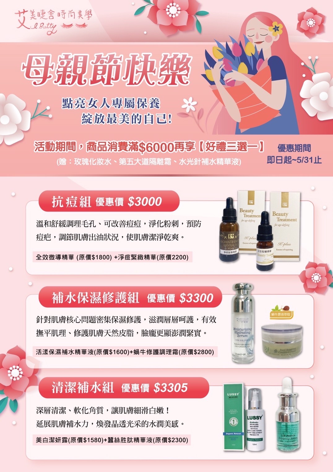 超聲波保濕護理課程 $2000(1.5hr) $1500
