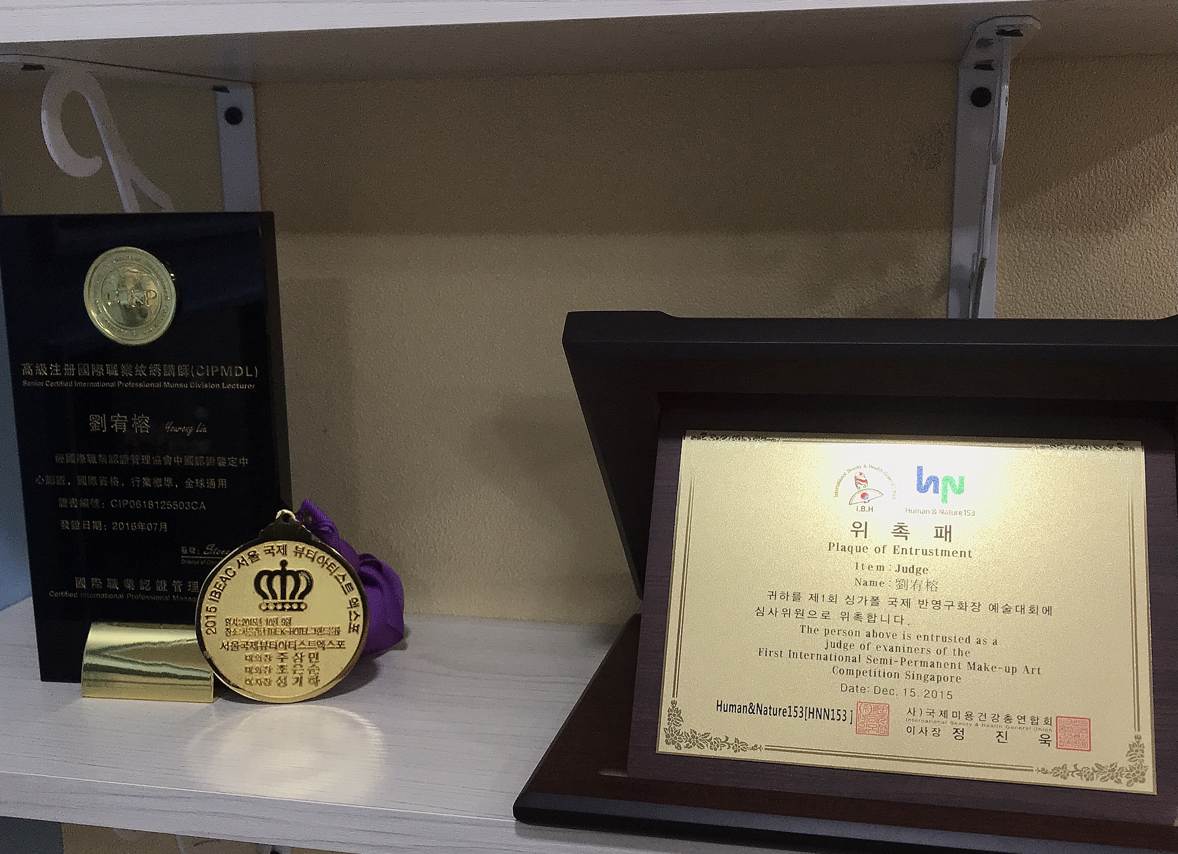 • 2016應邀CIP國際美業大賽紋繡評委,並榮獲中國百大名店名師大賞